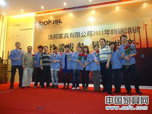 佛山浩邦(寶露斯)家具于3月11日至3月15日舉行2011年第一場的家具導購培訓。來自全國各地近200余名終端導購與經銷商在佛山南海區里水鎮匯美酒店參加了為期四天四晚的導購培訓。