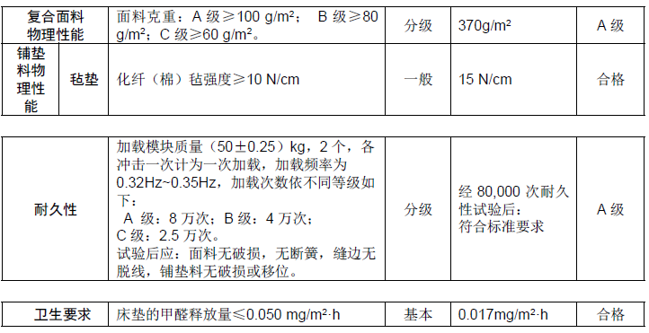 ·檢測標準號:QB 1952.2-2004《軟體家具 彈簧軟床墊》