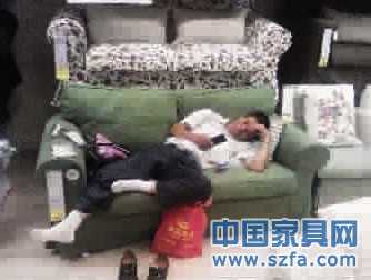 昨天下午,記者走訪了漕溪北路上的宜家商場,沙發(fā)和臥具區(qū)都存在網(wǎng)友描述的現(xiàn)象。沙發(fā)區(qū)內(nèi),三四人或坐或躺,其中還有兩名顧客脫了鞋,橫躺在沙發(fā)上。臥具區(qū)內(nèi),顧客睡覺現(xiàn)象更為嚴(yán)重,從兒童到老人,似乎都抗拒不了柔軟的床帶來的誘惑。記者剛到場時(shí),就發(fā)現(xiàn)一名老人守著孩子睡在一張床上。一旁想買床的顧客只能望而卻步。
