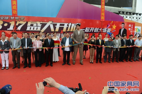 在21門禮炮的轟鳴聲中,在38條錦獅的簇擁下,全球環保大使姚明攜手家博城左鼐強董事長等38位嘉賓,一同為家博城剪彩,宣告了中國(佛山)國際家居博覽城正式開城。至此中國(佛山)國際家居博覽城在經歷一千多個日夜的精心雕琢,終于迎來了盛大開城,旨在以博大的胸懷,海納四方賓客。