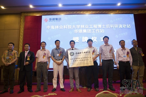 中南林業科技大學副校長陳洪、材料學與工程學院院長吳義強為“中南林業科技大學林業工程博士后科研流動站廣東華頌家具工作站”揭幕,并將此牌匾授予華頌集團。在授牌儀式上,陳洪副校長對華頌集團“科技研發”和“人才強企”的發展模式給予充分肯定,華頌集團副董事長陳建京表示,校企聯合發展模式將全面提升華頌集團的研發實力,并將努力推動中國林木業工程的研究和發展,實現校企共贏。