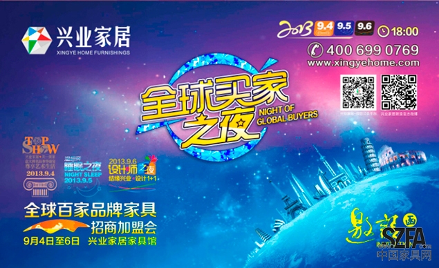 9月4日-6日,興業家居將再續三月份“2013厚街首屆家居文化節”傳奇!在東莞名家具展覽會期間借力會展效應陸續推出“全球買家之夜”——“全球百家品牌家具招商加盟會”、“意大利之夜”、“睡眠之夜”、“設計師之夜”等一系列活動,這將再一次刷新興業家居史上的又一次推廣熱潮。