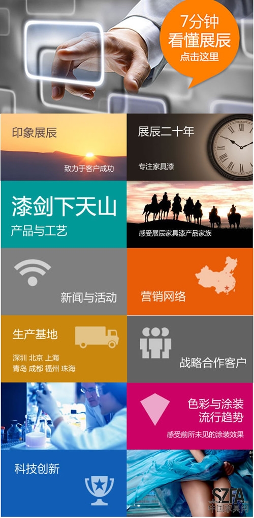 站在品牌時代的前沿,運用互聯網思維,在這個大數據縱橫的時代,展辰涂料顛覆所有人對化工企業的常規想象,不斷創新,建立了以致力于客戶成功為宗旨的移動互聯網平臺——展辰家具漆微信官方網站,成為行業表率。
