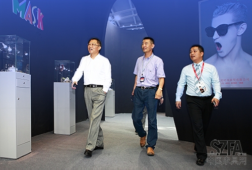 深圳時尚創意產業聯盟會長(左)、秘書長(右)與新興產業處處長王志毅(中)視察現場