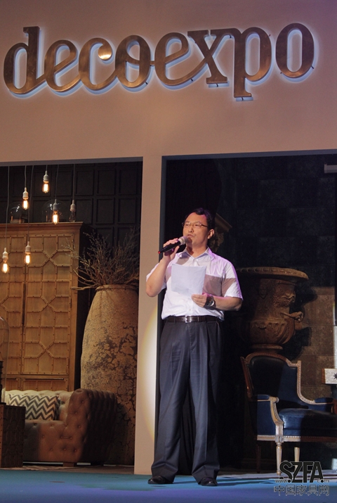 上午十點位于深圳會展中心一號館的深圳市時尚創(chuàng)意產(chǎn)業(yè)聯(lián)盟區(qū)座無虛席,深圳市經(jīng)濟(jì)貿(mào)易與信息化委員會郭立民主任、高林主任,深圳時尚創(chuàng)意產(chǎn)業(yè)聯(lián)盟侯克鵬主席,深圳市家具行業(yè)協(xié)會黃華坤會長及服裝、黃金珠寶首飾、鐘表、皮革、工業(yè)設(shè)計行、內(nèi)衣、眼鏡行業(yè)協(xié)會代表等嘉賓出席了本次會議。深圳時尚創(chuàng)意產(chǎn)業(yè)聯(lián)盟侯克鵬主席,深圳市家具行業(yè)協(xié)會黃華坤會長和深圳市經(jīng)濟(jì)貿(mào)易與信息化委員會高林主任代表嘉賓上臺致辭,恭祝活動圓滿成功,并為深圳市時尚創(chuàng)意產(chǎn)業(yè)聯(lián)盟送上祝福。
