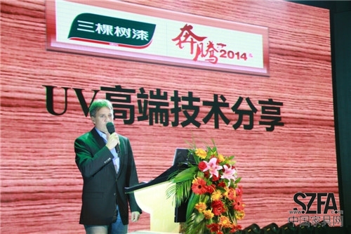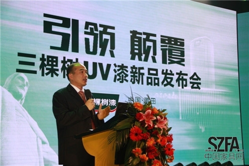 隨后,國內UV漆權威專家施文芳女士詳細解讀國內UV技術的發展現狀和趨勢;同時揭示了三棵樹中巴UV漆合作及推出新品的重大意義。