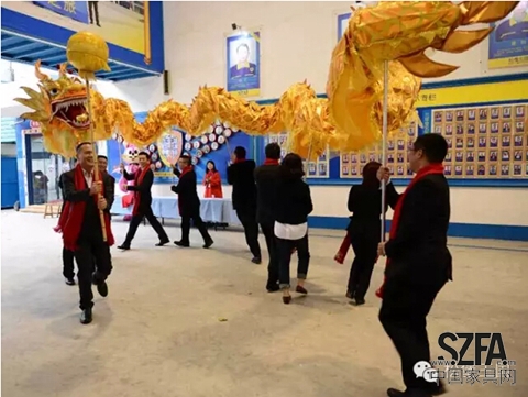 精彩絕倫的醒獅表演后,一支由郭總及各中心負責人9人組成的18米長舞龍隊伍為家人們奉獻了一場龍獅合歡盛景,引得現場拍手叫好。隨后,董事長郭總帶領公司高管向全體家人送去新春的祝福,祝福家人大吉大利、萬事如意;并向家人承諾:薪水如芝麻開花節節高,真正體現了公司成就員工的企業文化。
