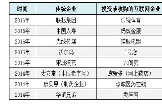 近兩年傳統(tǒng)企業(yè)對(duì)新興互聯(lián)網(wǎng)企業(yè)的垂直整合