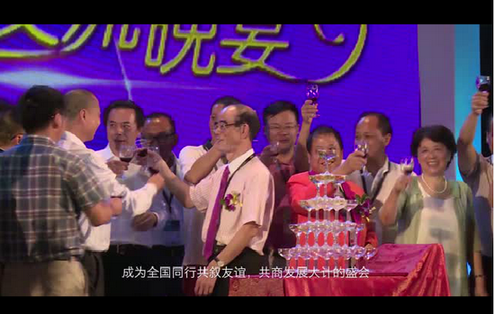 ▲晚會現場 播放的企業祝福合輯,講述與廣東家紡協會共同成長的20年