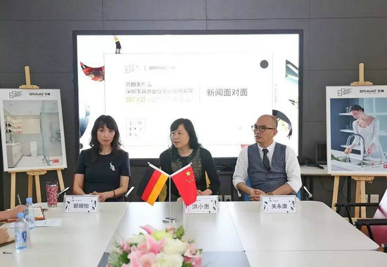 德國貝朗(亞太)副董事長兼總經理 郭琬怡(左一)、深圳家具行業協會秘書長 洪小惠(左二)、深圳家具協會住宅精裝研究院院長 關永康(左三)接收媒體群訪