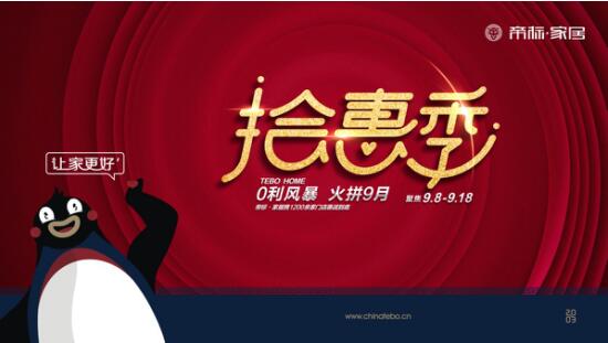 9月來了,國慶還會遠嗎?接踵而至的中秋節、國慶節、雙十一、圣誕節已經化身為“買買買”的代名詞。一波接著一波的促銷浪潮即將掀起。帝標家居提前打響促銷第一槍,9月8日正式啟動“拾惠季——0利風暴火拼9月”促銷活動,讓消費者不用掐分算秒的等待促銷倒計時,隨時隨地都能以最優惠的價格賣到最滿意的產品。