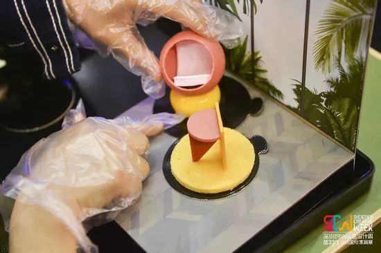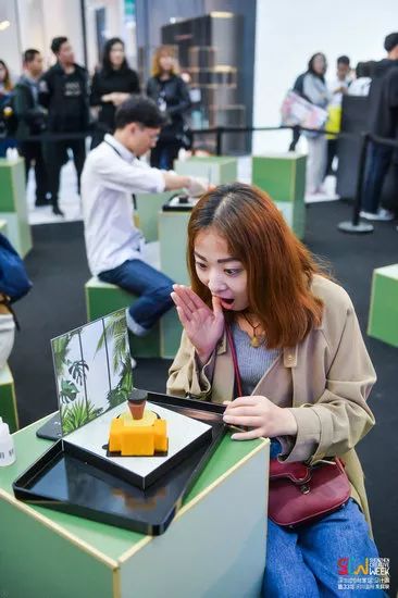 大城小食,展位上熙熙攘攘的人群都想嘗一口深圳。臺灣知名設計師曾熙凱聯合策劃“The Food & City•大城小食”創意設計,用食物設計的方式向世界傳達深圳故事、深圳文化和深圳精神,讓世界看到深圳的無限創意和活力。以食物做成家具部件,以餐盤作為房間地板,觀眾可以現場將各種部件組合,自由創造出屬于自己的家具,詮釋自我風格,最后一口一口吃掉。