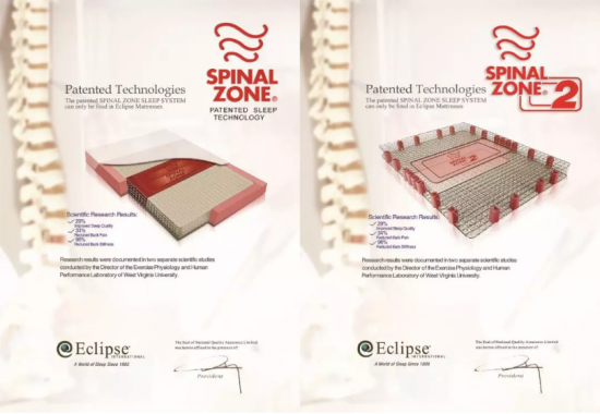 彈簧床墊、乳膠床墊、記憶棉床墊、棕床墊等品類繁多,什么床墊真正護脊?在美國,誕生于1905年的Eclipse伊麗絲床墊,針對護脊這一科學(xué)問題進行了長達數(shù)十年的研究,并于1967年發(fā)明了“中央護背”設(shè)計,又稱“床中床”設(shè)計,即在床墊中間再增加一張小床以增加床中央的支撐力,可以減輕腰部、背部及脊椎的壓力,同時可保持人體的曲線美。