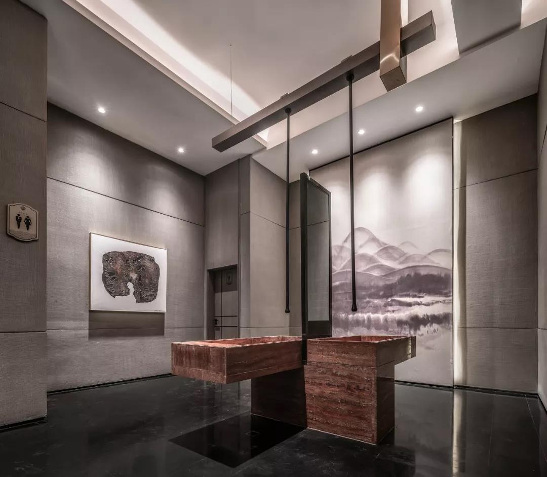 設計格外關注內外空間的光影滲透,將光的引導、風的福澤納入其中,穿透過紗幔、竹編,爬上粗麻與石桌……空間的東方美學意識油然而生。當代藝術表情則顯露在幾何色塊的表象之上、深邃的肌理與精尚的質感之中,空間在一張一弛、新舊合鳴的節奏中完成。