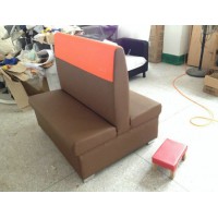 商品特性:商品從打樣到開料再到油漆最后到包裝一流程工作都順然有序, 簡潔的造型、無論從材質、工藝、亮度都是快餐廳卡座的首選家具。