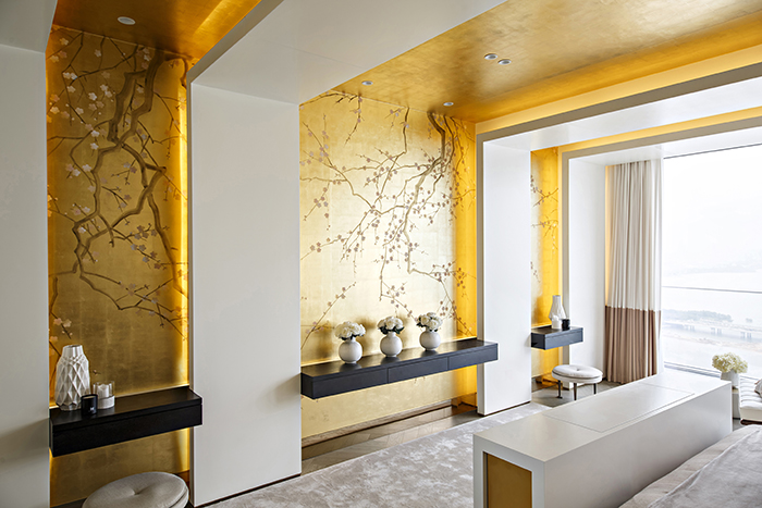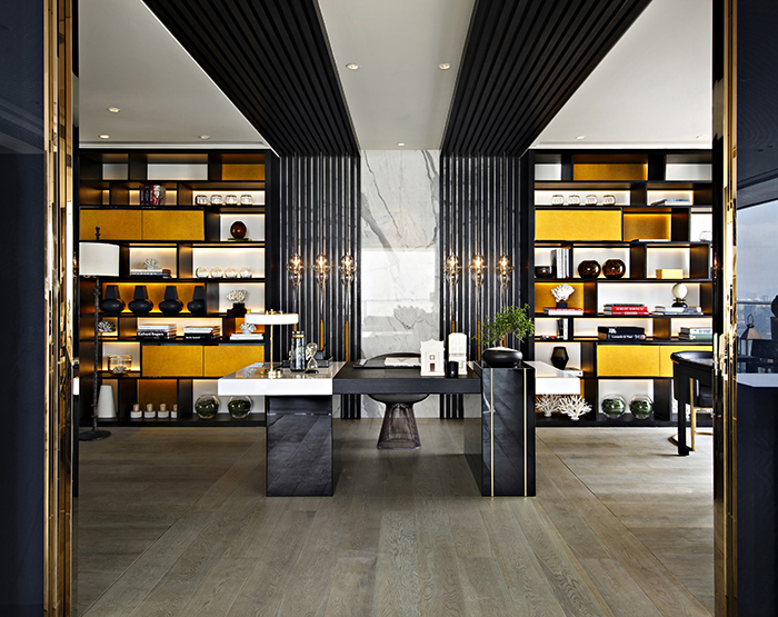 Hoppen's unparalleled style and expertise made her the perfect fit for the Shenzhen Project. She flawlessly captures the awe-inspiring nature of the building by playing with textures and mixing beaten metals with different marbles, woods, golds and natural materials. Furthermore, her use of iconic pieces, seductive vintage furniture, statement pendant lighting and tasteful accessories result in something truly spectacular and effortlessly elegant.